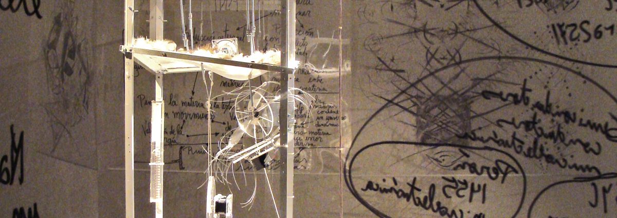 Cama elástica para el nacimiento de las ideas es una máquina para la meditación sobre espacio y tiempo, coordenadas comunes a la obra y al pensamiento.