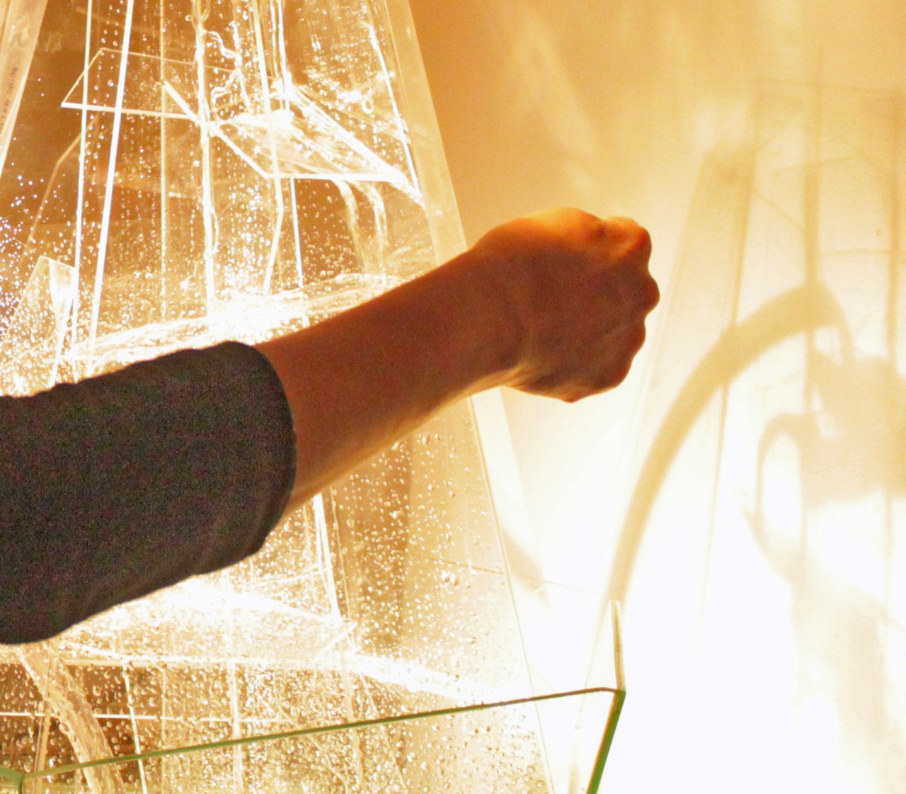 Simultaneously to the theoretical construction, the production of the work Clock/ rhizome unleashes intuitions of knowledge by allowing the apperception of electronically activated matter. This raises questions that encourage research: is matter the container of dynamic universes, is it possible for number to be inscribed in matter, and does the encounter between matter and number, through programmed behaviours, produce error and drift?