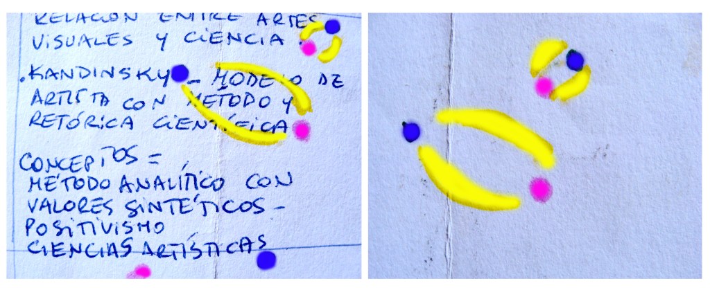 La traducción al lenguaje sonoro revela otro sentido del flujo de pensamientos en diálogo entre docentes y estudiantes y permite reconocer ritmos, intensidades, movimientos, fugas, etc. Los aspectos particulares del aparato epistemológico teórico /práctico de nuestro campo de estudio cobran una dimensión temporalizada y expresiva .