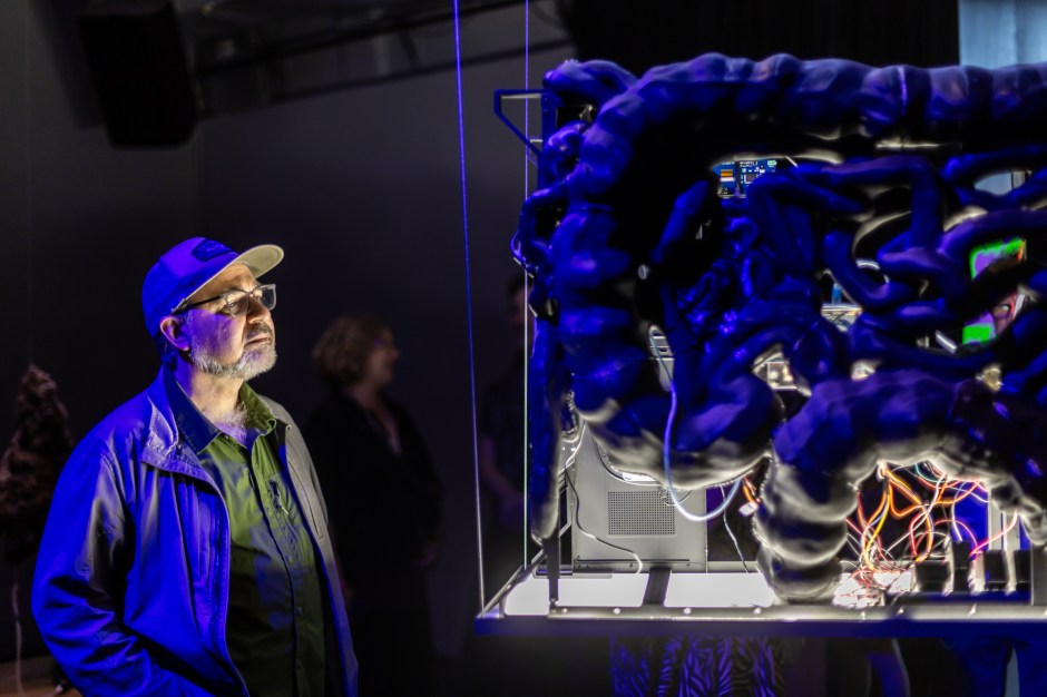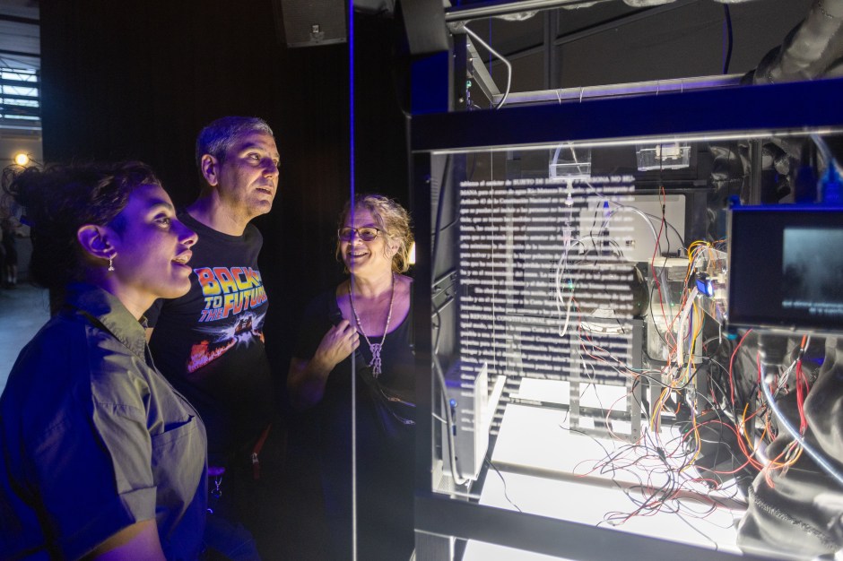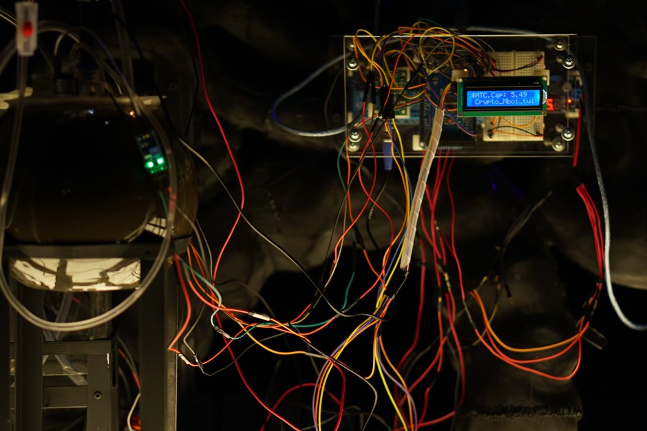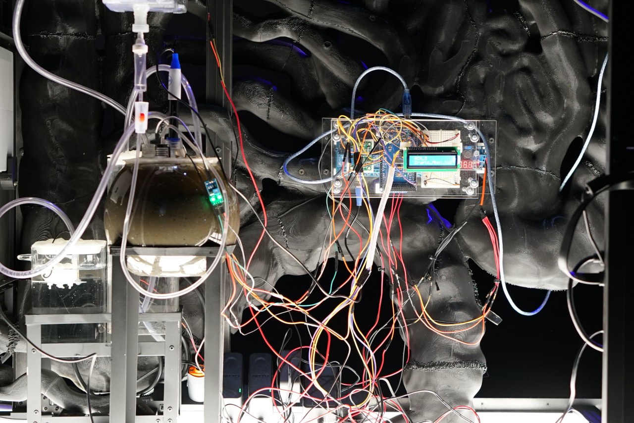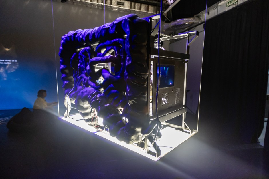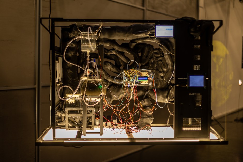 mecánicas, electrónicas, digitales y biológicas. En su interior, un sistema bioquímico monitorea la evolución del barro, el agua, el ricino y bacterias del río, generando visuales sobre mutaciones del Ricinus communis.