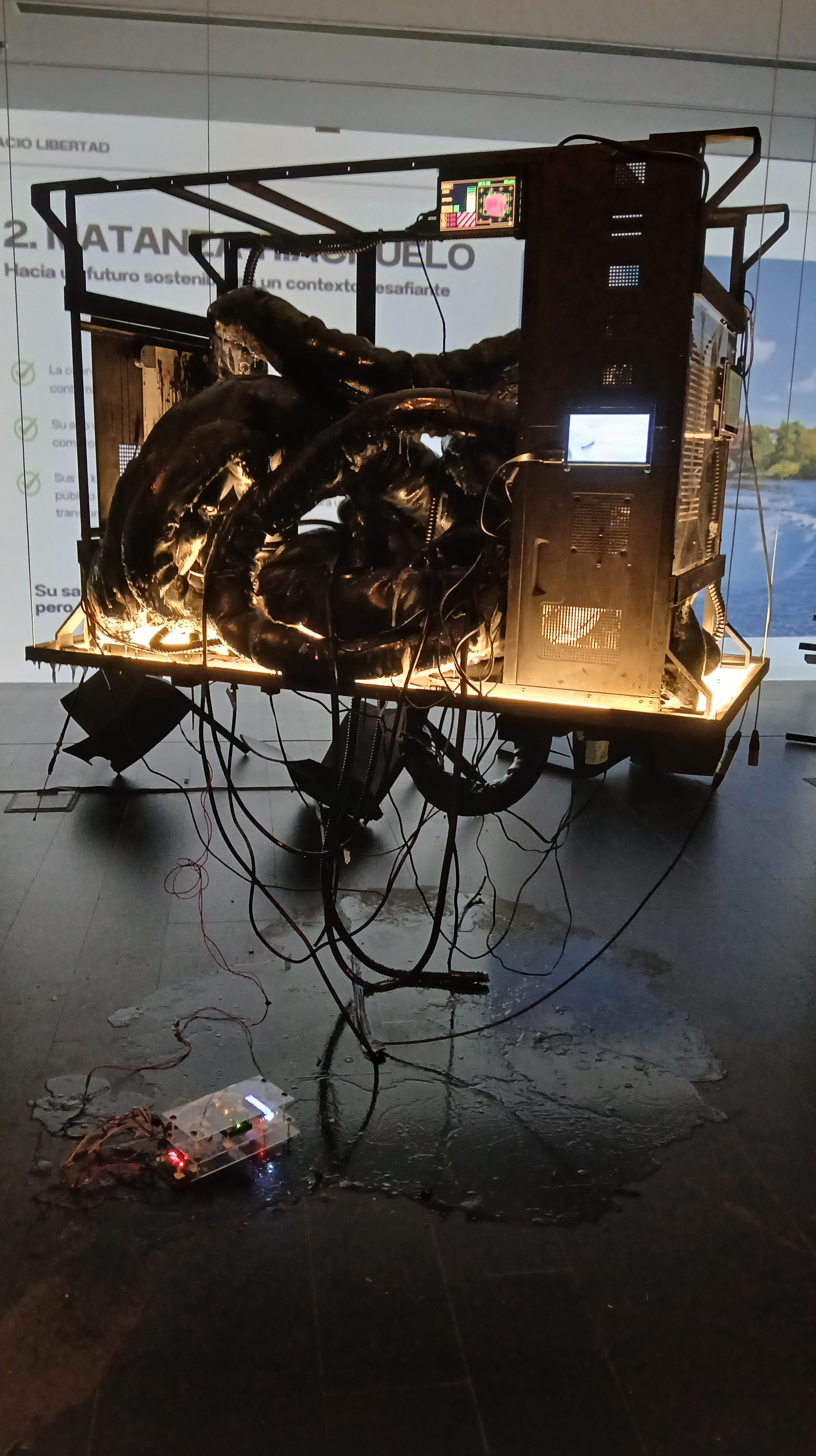 Susurrador rizomático/ Agosto 2025/Tuberías de desagüe y electrónica digital/ En «Sentimiento oceánico» Muestra colectiva curada por Pablo Sayago y Clara Berardi. Jornadas de la cultura UNGS